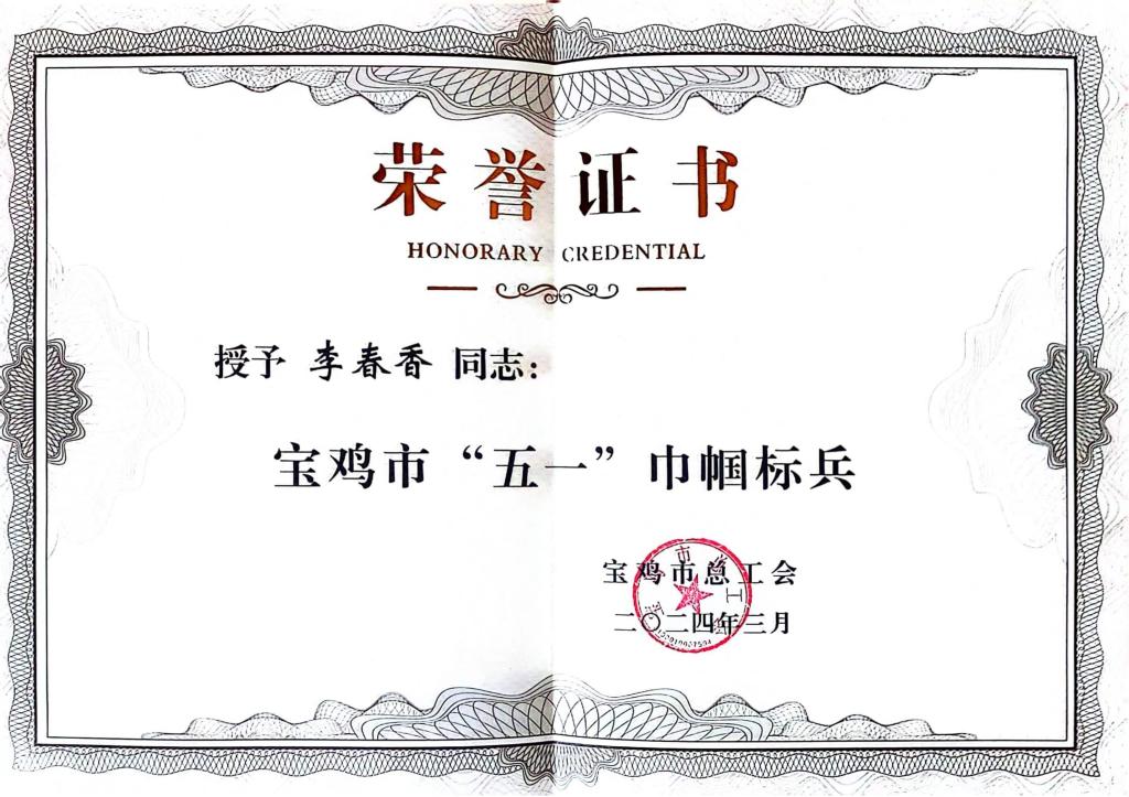 • 扎根一線 風華無限||寶光股份李春香喜獲寶雞市“五一巾幗標兵”榮譽稱號