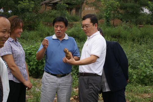 座談會后,麟游縣、招賢鎮(zhèn)及高莊村、大嶺村三級領導,陪同付副書記及袁副總一行,實地考察了地膜玉米和地膜土豆扶助項目基地并在高莊村委會會議室進行了座談。當領導一行看到項目基地的農作物長勢良好、豐收在望,感到十分欣慰,并就基地的管理、發(fā)展及農副產品的銷售等,向2個村的干部對提出了建議和希望。