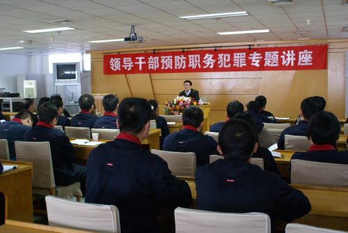 為進(jìn)一部加強(qiáng)公司反腐倡廉工作,使領(lǐng)導(dǎo)干部深入了解職務(wù)犯罪的危害性及預(yù)防職務(wù)犯罪的重要性,根據(jù)公司黨委年度黨員干部廉政教育工作安排,公司于10月14日特邀請(qǐng)寶雞市渭濱區(qū)檢察院檢察長蘇小為同志來公司對(duì)領(lǐng)導(dǎo)干部進(jìn)行預(yù)防職務(wù)犯罪講座。全體中層以上領(lǐng)導(dǎo)干部到課認(rèn)真傾聽了蘇檢察長的精彩講課。