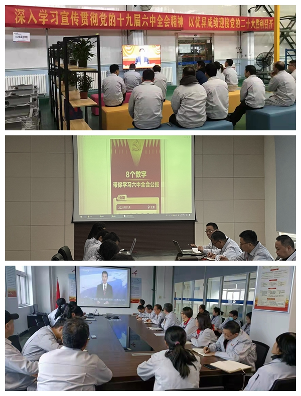公司黨委要求各黨支部緊抓契機、提高認識,迅速行動起來,進一步增強學習貫徹十九屆六中全會精神的自覺性和主動性,以迅速及時、扎實有效的舉措,推動形成學習貫徹黨的十九屆六中全會精神的熱潮;要求黨委班子成員、各黨支部書記以及及黨委部門負責人要帶頭學習、并撰寫學習心得;要求各黨支部精心組織,通過三會一課、班前會、晨會等多種形式,深入學習貫徹黨的十九屆六中全會精神會議,推動全會精神進車間、進班組、進基層,領會全會精神、激發干事創業激情。