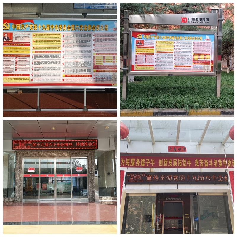 寶光股份黨委工作部門通過LED大屏、宣傳櫥窗、展板、滾動電子屏、電視、黨建宣傳欄、主干道橫幅等宣傳平臺進行十九屆六中全會主題外觀、宣傳口號及主題內容宣傳,營造濃厚的宣傳氛圍。