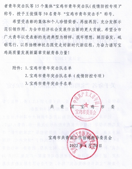 近日,從團市委獲悉,寶光股份固封班組被授予“寶雞市青年突擊隊”榮譽稱號。