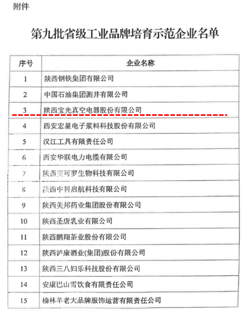 近日,陜西省工業(yè)和信息化廳公布了第九批省級(jí)工業(yè)品牌培育示范企業(yè)名單,寶光股份成功入選并榮獲“省級(jí)工業(yè)品牌培育示范企業(yè)”稱(chēng)號(hào)。