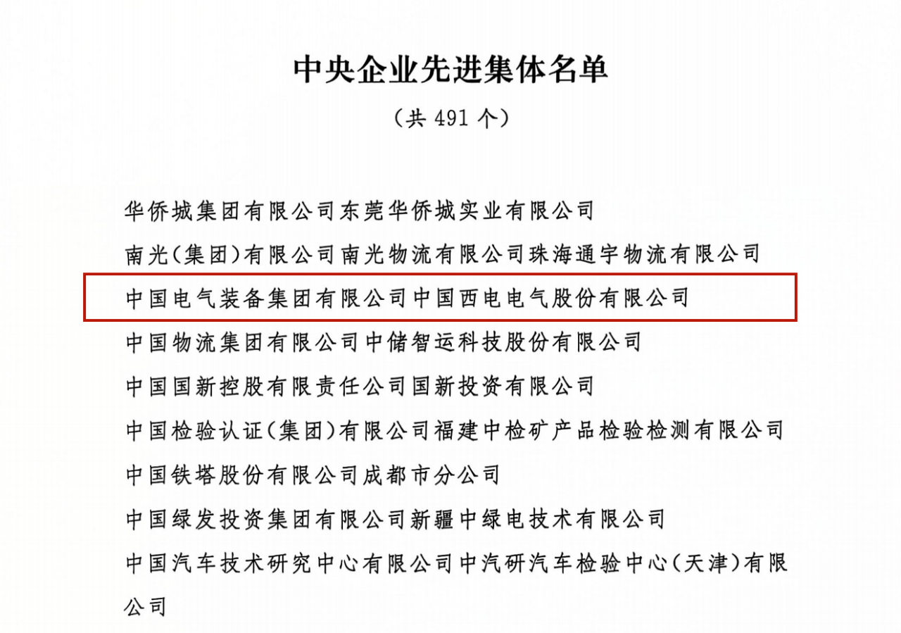 中央企業先進集體和勞動模范每5年評選一次,是國務院國資委系統的最高級別榮譽。在中華人民共和國成立75周年之際, 為表彰先進,樹立典型,進一步激勵中央企業廣大職工在全面推動國資央企高質量發展的新征程中建功立業,最終由人力資源社會保障部、國務院國資委聯合表彰。此次榮獲“中央企業先進集體”稱號,不僅是對西電近年來辛勤耕耘和不懈努力的肯定,更是對其在科技創新、產業發展和社會責任等方面取得顯著成績的表彰。西電將以此次榮獲“中央企業先進集體”稱號為契機,進一步加大科技創新力度,提升產業發展水平,積極履行社會責任,為建設世界一流企業貢獻西電力量!